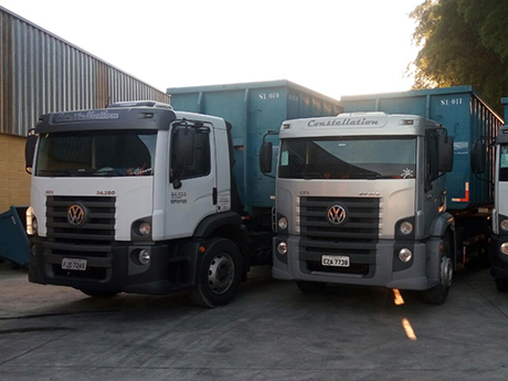 Dispomos de frota própria para coleta (caminhões roll-on roll-off, trucks e Romeu Julieta).